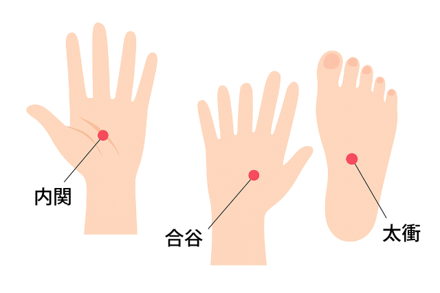▶ 押し方:反対の親指で3〜5秒強めに押す→離すを5回ほど。気分が悪くなる前に押すのがおすすめ!
